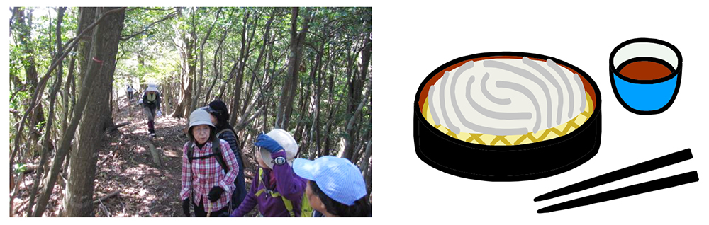 麻綿原高原から国有林歩道などへて「もみの木庵」にてお蕎麦に舌鼓(昼食)、午後は国有林歩道などをへて県民の森までの約10kmのハイキングです。やや健脚向き、団体歩行。